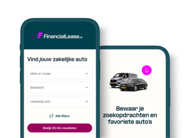 FinancialLease.nl helpt je bij de financiering voor jouw zakelijke auto. Kijk samen met jouw persoonlijke Lease Adviseur naar een slimme leaseoplossing voor je onderneming en vind de auto die het beste bij jou past.